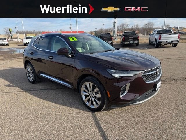 At Wuerflein Chevy Buick GMC, we take extra care in reconditioning our used vehicles, so we can offer our customers the highest quality vehicle on the market. Come to Wuerflein today to experience the difference. Priced below KBB Fair Purchase Price! Clean CARFAX. Certified. Rich Garnet Metallic 2022 Buick Envision Avenir FWD 9-Speed Automatic 2.0L Turbocharged 3-Channel Programmable Universal Home Remote, Adaptive Cruise Control, Continuous Damping Control, Enhanced Automatic Emergency Braking, Enhanced Automatic Parking Assist, Enhanced LED Functionality Headlamps, Front & Rear Park Assist, HD Surround Vision, Head-Up Display, Heated Driver & Front Passenger Seats, Heated Rear Outboard Seating Positions, Heated Steering Wheel, Lane Change Alert w/Side Blind Zone Alert, Navigation System, Preferred Equipment Group 1SU, Rear Camera Mirror, Rear Camera Mirror Washer, Rear Cross Traffic Alert, Safety Package, Technology Package I, Technology Package II, Ventilated Driver & Front Passenger Seats.